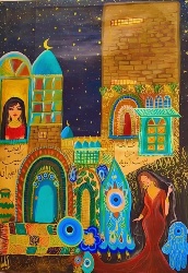 في لوحاتها، تحضر بغداد بكل زهوها وذاكرتها الموشّاة بالزخارف والخط العربي والألوان المضيئة. تصف ذلك قائلة: “أستوحي الكثير من أعمالي من تراثنا البغدادي العريق، بكل تفاصيله الجميلة من شناشيله وزخارفه وألوانه، وأحياناً أستلهم الفكرة من قصة عابرة أو موقف أثّر في قلبي، سواء كان مشهداً محزناً أو لحظة فرح.”
