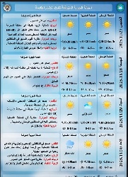 مؤكداً إن (طقس يوم غد الجمعة سيكون صحواً، مع فرصة لتصاعد غبار خفيف، ودرجات الحرارة تنخفض بضع درجات).