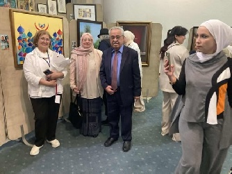 وفي جولة في هذا المعرض الانيق والذي تميز بجمال التنظيم وحسن الإدارة والاستقبال وجسدت اللوحات ابداعات وافكار عبرت عن احاسيس مرهفة واستلهامات من وقائع عراقية عكست الكثير من من الاوجه الحضارية والتراثية والشعبية للعراق، وهو ما جعلني ان اتحسس رهافة الانتماء وعمقه في مشاعر الفنانات وكأنهن تركن بصماتهن في هذا المعرض وهي تحمل عنوانا محببا- هنا العراق- وهذا بحد ذاته يؤكد معنى القيم الانسانية والوفائية لكينونة العراقية تجاه عالمها العزيز- العراق- فهي اينما تحل وكيفما تبتعد عن الوطن يبقى الحنين والاعتزاز به مرافقا لها يحتويها وتحتويه.