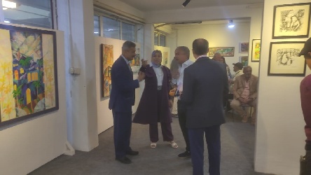 وتجولت (الزمان) في المعرض والتقت عدد من الفنانين منهم التشكيلي هيثم حسن الذي قال المعرض ضم الفنان جميل حمودي، وابنته عشتار جميل حمودي وحفيدته زينه عصام.لذلك أصبح المعرض اجيال.ولمعرض ضم مجموعة من أعمال الراحل جميل حمودي في هذا المعرض هناك تجربه عائلية فنية وأدبية).