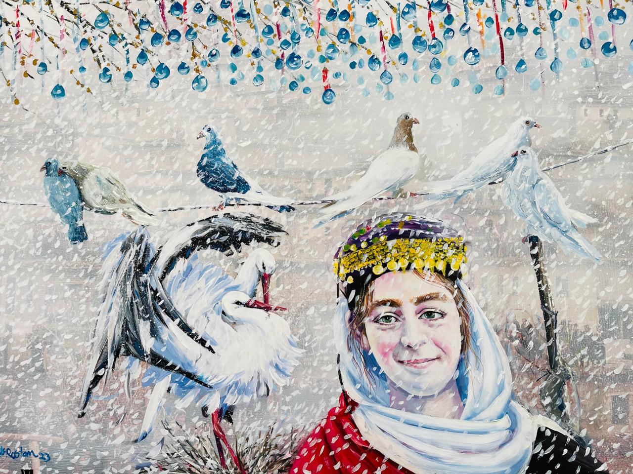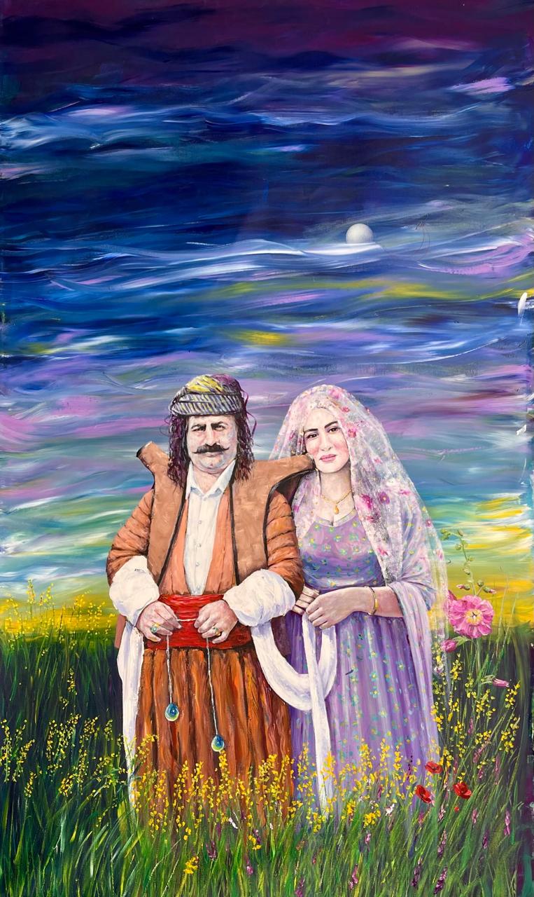 ومع تطور تجربته، طغى اللون الأزرق الفيروزي على أعماله، واتجه نحو الأسلوب الرمزي التعبيري. وبهذا الصدد يقول إن «لوحاتي قصائد مصوّرة تحكي قصة الشعب الكردي»، ويضيف أنها «تجسد مشاعر الهوية والوجع والفرح يرافق حياة الإنسان الكردي».