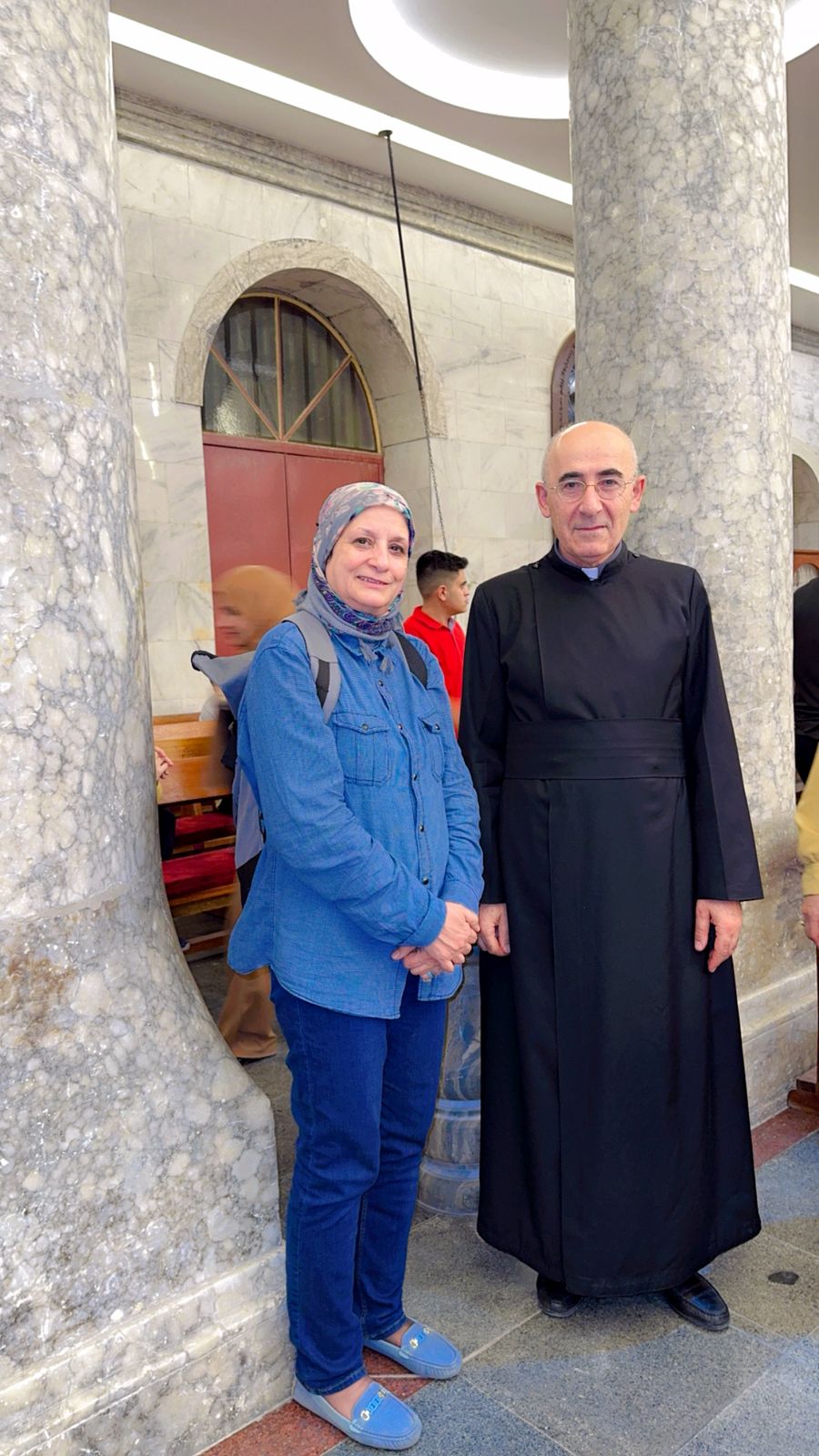 استقبلنا الأب جورج جحولا، برحابة صدر، شارحًا لنا قصة إحياء الكنيسة التي دُمرت على يد داعش، كيف أُعيد بناؤها بحب وإصرار، مستخدمين نفس الحجارة والمواد التي بُنيت بها عام 1932، حفاظًا على هويتها وروحها التي تخطت الزمن.