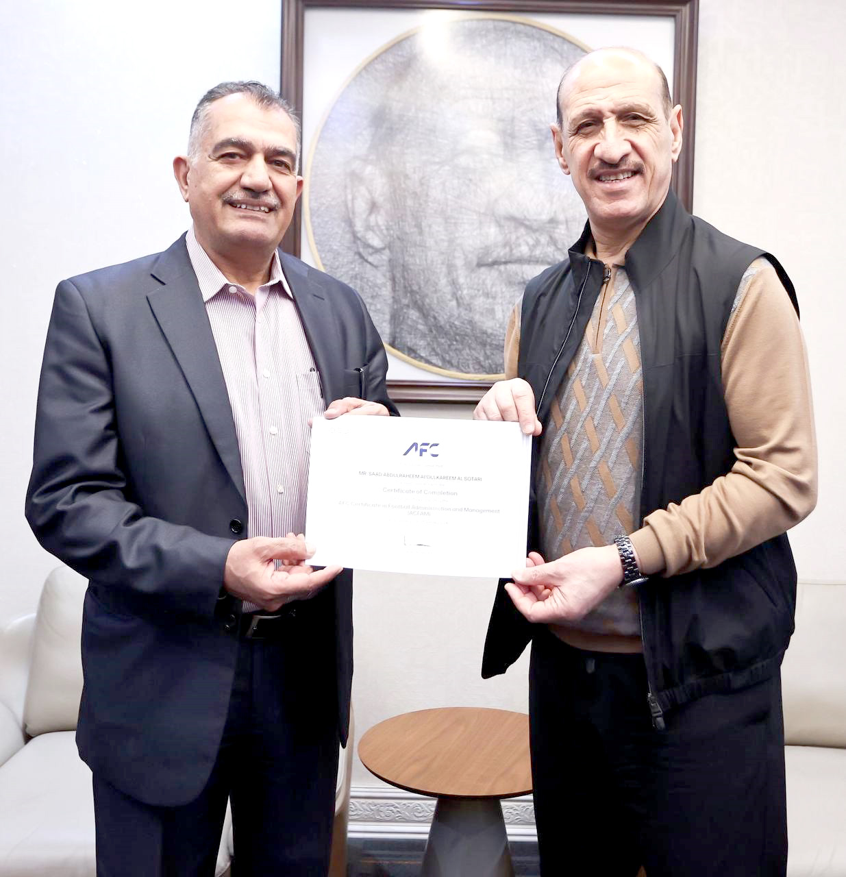 سلّمَ رئيسُ الاتحادِ العراقيّ لكرةِ القدم عدنان درجال، الشهادةَ الصادرةَ من المركزِ الأكاديميّ للتميُّز في الاتحادِ الآسيويّ لكرة القدم التابع للاتحاد الآسيويّ لكرةِ القدم AFC للمُحاضرِ سعد عبد الرحيم. وترتبط الشهادةُ في الإدارةِ والتنظيم للدورةِ التي جرت للفترة من 4 كانون الأول 2024 لغاية 18 كانون الثاني 2026. وتعد هذه الشهادةُ من أهم برامجِ الاتحادِ الآسيويّ لكرة القدم، وهي موجهةٌ للملاكاتِ الإداريّة والفنيّة الراغبة في تطويرِ إدارةِ وتنظيم كرة القدم.