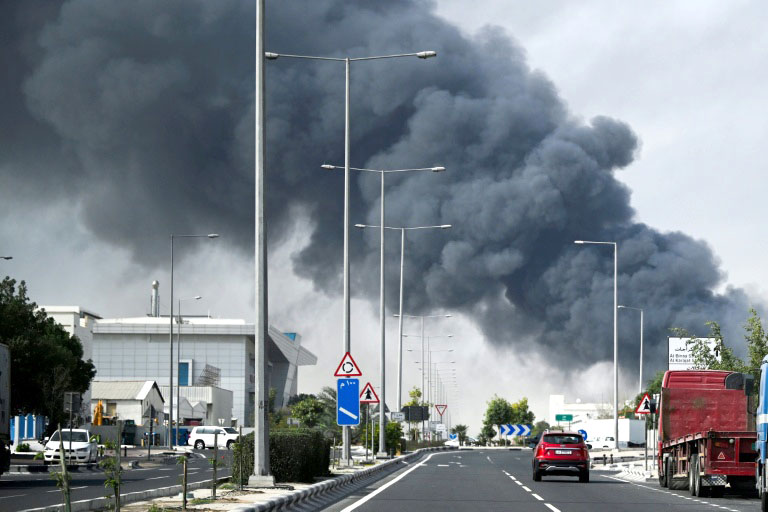 وفي سلطنة عمان، أصابت طائرات مسيرة، أحد خزانات الوقود في ميناء الدقم، بعد يومين من قصف الميناء الذي أدى إلى إصابة أحد العاملين، في الهجوم الأول على السلطنة منذ بدء إيران تنفيذ ضرباتها في الخليج. فيما توعد الرئيس الأمريكي دونالد ترامب، بالرد قريباً على الهجوم الذي استهدف سفارة الولايات المتحدة في العاصمة السعودية الرياض، بعد ‘ن أُطلقت عليه طائرتان مسيرتان يُشتبه في أنهما إيرانيتان.