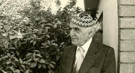 * الاولى: بالاسود والابيض للجواهري في باحة منزله الخارجية اواسط السبعينات الماضية..