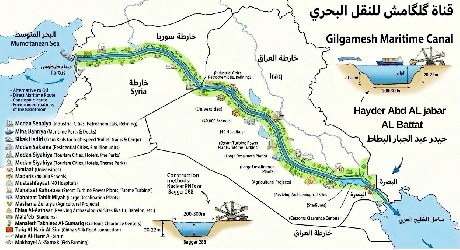 داعياً إلى (الاطلاع على كافة التفاصيل الفنــــــــية والخرائط الجيوسياسية واللقاءات الإعلامية الموثقة لهذا المشروع العملاق عبر البحث في فضاء الإنترنت وشبكات التواصل الاجتماعي عن قناة گلگامش للنقل البحري).