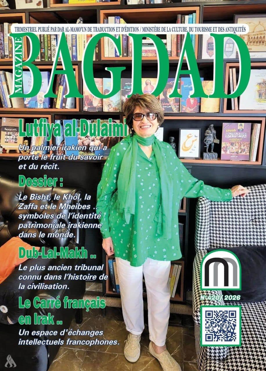 صدر عن دار المأمون للترجمة والنشر العدد الفصلي الإلكتروني الأول لعام 2026 من مجلة "بغداد" الناطقة بالفرنسية، متضمناً مواد ثقافية متنوعة وملفاً خاصاً عن العناصر الأربعة المدرجة على قائمة التراث غير المادي لليونسكو.وجاءت الافتتاحية بعنوان "من المحيبس إلى العود.. يثمن العراق تراثه الحي"، مؤكدة أهمية صون الهوية الثقافية، وفي باب الأدب، استذكر العدد الكاتبة والمترجمة الراحلة لطفية الدليمي، مسلطاً الضوء على منجزها الإبداعي.كما تناول العدد عناصر التراث غير المادي مثل الحنة، الزفة، البشت، ولعبة المحيبس، إلى جانب الاحتفاء بشخصيات ثقافية عراقية منها الفنانة يسرى العبادي.وتضمن العدد موضوعات عن البيوت البغدادية التراثية مثل "دار الوتار"، وأقدم محكمة في التاريخ "دب لال ماخ"، فضلاً عن دور الذكاء الاصطناعي في التنمية المستدامة.كما سلط الضوء على الدكتور قتيبة حميد وتكريماته العلمية، واستعرض أبرز محطات السينما العراقية في المهرجانات، واختُتم بتغطية أنشطة وزارة الثقافة، ومنها جلسة المجلس الوزاري العربي للسياحة واختيار بغداد عاصمة للطفل العربي.