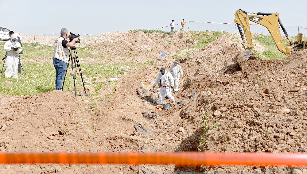 وقال رئيس فرق التنقيب عن المقابر الجماعية في العراق أحمد الأسدي في تصريح أمس إن (الملاكات باشرت بعملية رفع الرفات من مقبرة جماعية واقعة في منطقة الهرمات بغرب مدينة الموصل في محافظة نينوى). وأضاف إنه (بحسب تحليل الصور الجوية، تعود هذه المقبرة إلى آذار 2015 من فترة عناصر داعش). وأشار الأسدي إلى إن (العمليات ستستمر حتى 21 نيسان الجاري). وأوضح الاسدي إنه (لا يمكن التكهن بعدد الرفات إلا بعد انتهاء أعمال الرفع). مشيراً إلى إن (المقابر الجماعية التي يكونون فيها تقع عادة داخل المدن).وذكر إن (هناك ملابس مدنية بينها الزي القومي الأيزيدي مع الرفات، بينما تعود ملابس أخرى لعناصر قوات البيشمركة، التي حاربت الدواعش الذين نفذوا إبادة في حق الأقلية الأيزيدية). وفي آب الماضي، بدأت أعمال استخراج رفات من مقبرة الخسفة الجماعية قرب الموصل، التي يُقدّر أنها أكبر مقبرة جماعية في العراق وقد يصل عدد المدفونين فيها إلى آلاف.