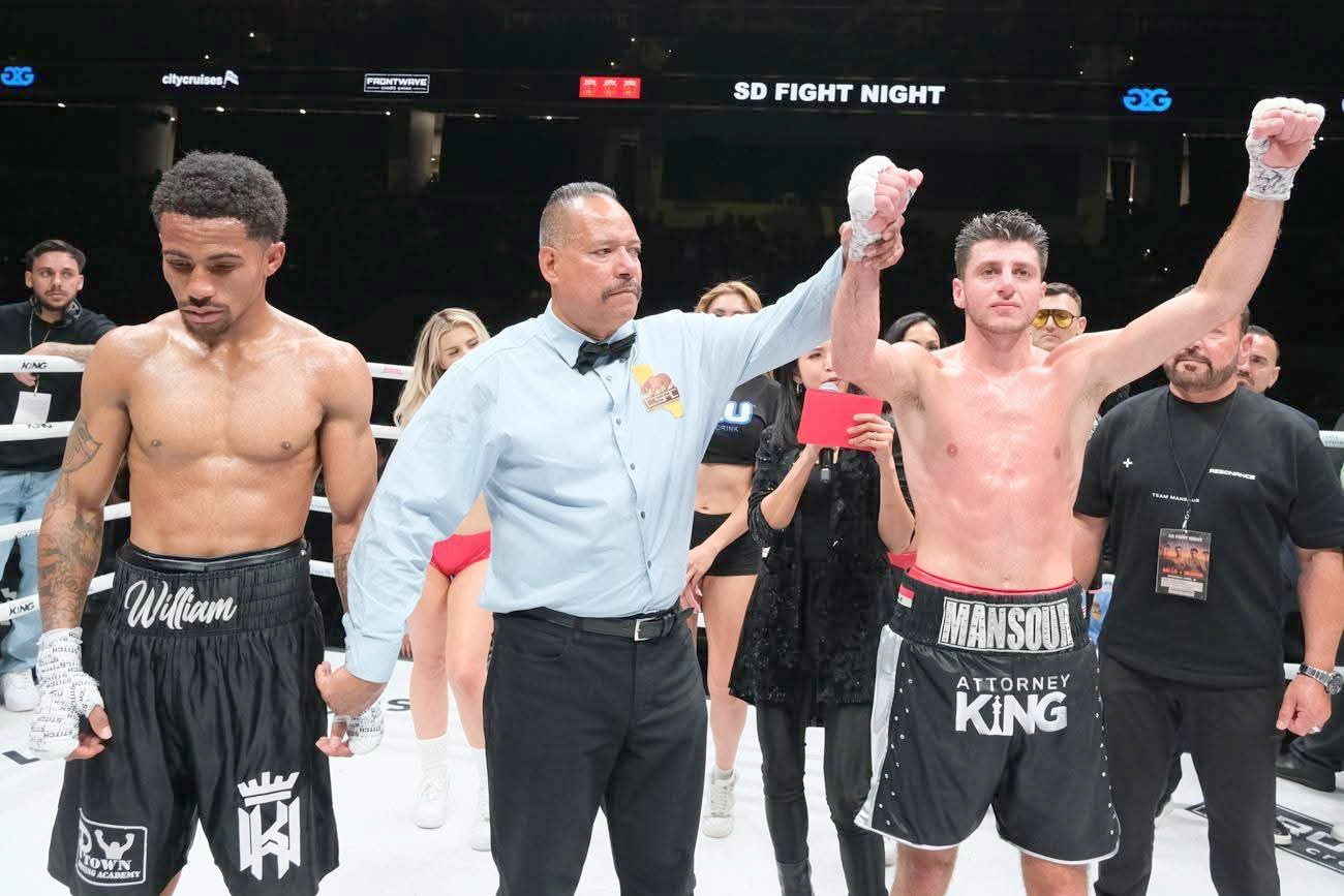 حقق الملاكم العراقي المغترب جوناثان مازن فوزا مستحقا على منافسه الأمريكي كينك وليم، في النزال الذي أقيم بمدينة سان دييغو ضمن منافسات وزن 65 كيلوغرامًا.