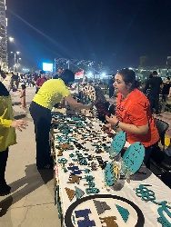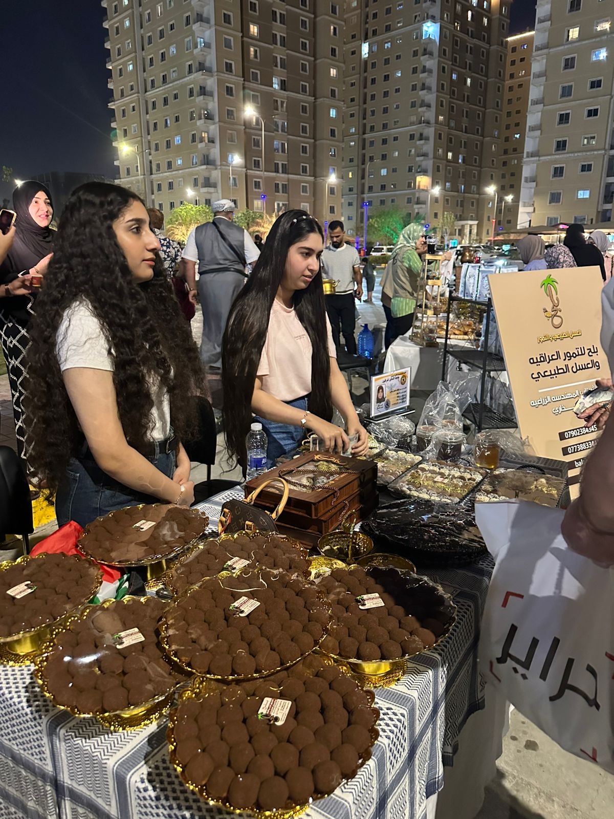تحول سوق خيري شهده مجمع بوابة العراق مساء الجمعة الى عرس وطني تزامناً مع اليوم الوطني العراقي الذي احتفلت به جميع القطاعات الشعبية والرسمية. واصطفت مناضد عليها منتجات يدوية وحلي فضية واعمال أخرى في رواق طويل يوازي ساحة خضراء للألعاب الرياضية تتوسطها نافورة تبعث شلالات الماء التي اضفت على جو السوق بهاءً وتألقاً.