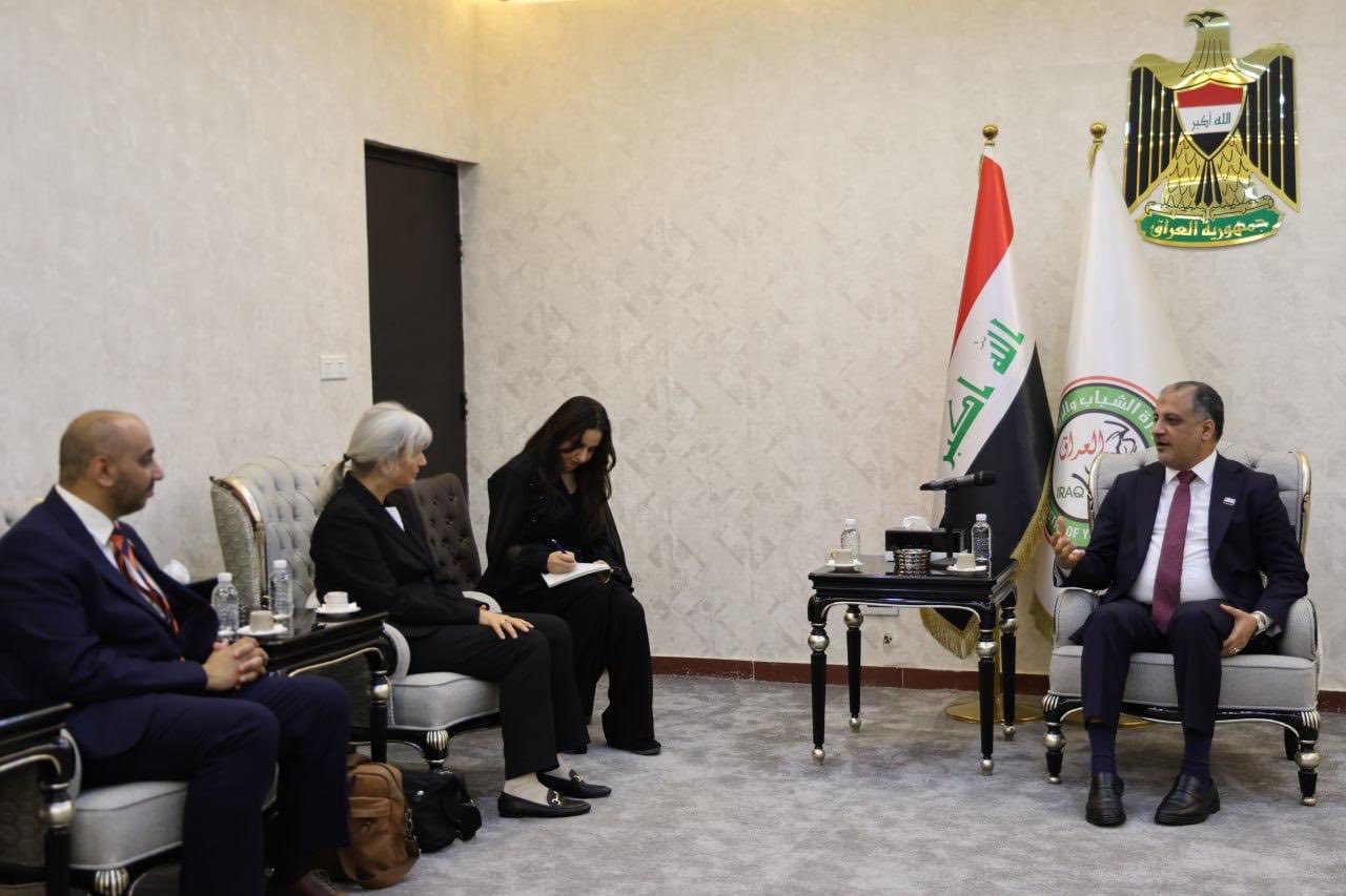التقى وزير الشباب والرياضة أحمد المبرقع، ممثل السفارة الألمانية في بغداد ماريون ايدل، والمؤسسة الألمانية للتعاون الدولي ، مشيدا بحجم التعاون بين وزارة الشباب والرياضة وبين السفارة الألمانية ومؤسسة التعاون ، في بناء تجسد عبر معرض الوظائف وفي ثلاث سنوات متتالية، معرباً عن تطلعه إلى استمرار هذا التواصل البناء والذي يسهم في تنمية وتطوير الشباب العراقي.