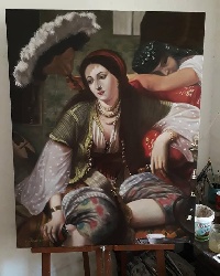 كان رسم عبارة عن حب ماء سنة 2006 واخر ما رسمت - لوحة استشراق طلب خاص من احد الاصدقاء.