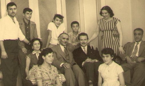 1/ السيد الجصاني الثاني من اليمين، وفي الوسط الجواهري الكبير، مع عقليتهما، وجمع من افراد الاسرتين- بغداد عام 1960..