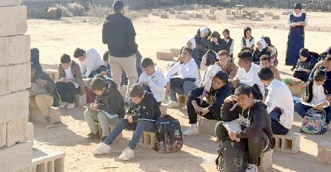 وأشار الناشطون، إلى أن (الطلبة يتلقون حصصهم التعليمية في ساحة المدرسة نتيجة قلة الصفوف، وسط مطالبات ببناء صفوف إضافية تستوعب العدد الكلي للطلبة).