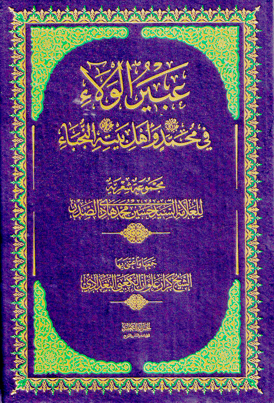 وكان الشيخ كرار علوان الكعبي البغدادي قد جمع الاشعار التي امتدح فيها الصدر النبي محمد واهل بيته واعتنى بها بحيث تضمنت قوافي الشعر في تقريظ الديوان، وهي خمس قواف، كما تضمنت مقدمة بعنوان بين يدي الديوان تحدث فيه البغدادي عن رحلته الطويلة مع عموم شعر الصدر في مختلف الاغراض، وتضمنت الطبعة اضمامة عن سيرة السيد حسين الصدر ومسيرته منذ الولادة والنشأة والدراسة وممارسة اعباء العالمية الدينية مروراً برحلة المنافي ثم العودة الى العراق بعد نيسان 2003.