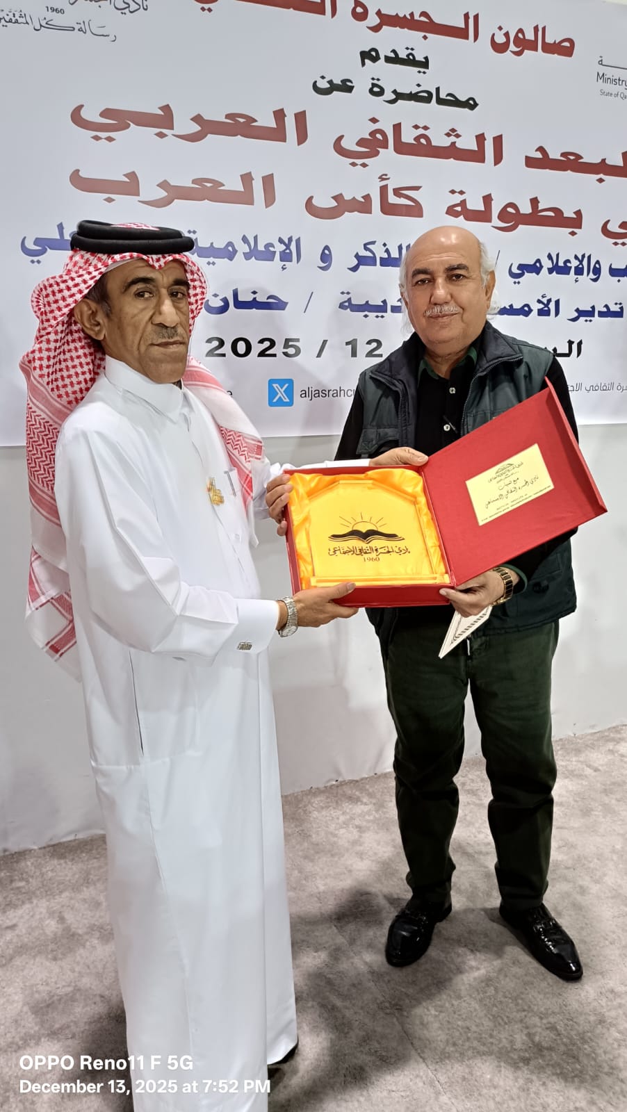 بدعوة كريمة من نادي الجسرة الثقافي الاجتماعي القطري وبالتعاون مع دار البدع للنشر وعلى هامش بطولة كاس العرب والفعاليات الثقافية المرافقة القى الكاتب والصحفي العراقي حسين الذكر محاضرة بعنوان البعد الثقافي العربي لكاس العرب وكما تم توقيع وتوزيع كتاب الراحل النجم (احمد راضي .. مدونات دامعة ) وذلك بحضور نخبوي اكتظت بهم قاعة النادي وبتغطية اعلامية مكثفة من قنوات الكاس والبي ان سبورت وتلفزيون قطر وقنوات اخرى.
