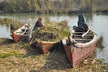 لقد اعتنى الفنان وهو ينتقي نموذجه بحركة الجسد خاصة حين يكون الإنسان يعمل ويواصل الجدف وسط مساحات مائية،منتصباً فوق سطح زورقه.فهي صورة تعكس حيوية إنسان المياه،وفعاليته اليومية.وقد راعى في اللقطة نسب تسجيل كل مقومات المشهد،عبر توازن واضح بين مساحة سطح المياه،وجدران القصب والبردي ومساحة السماء.هذه العناصر هي التي حققت بنسبها الفنية مشهداً مثيراً.