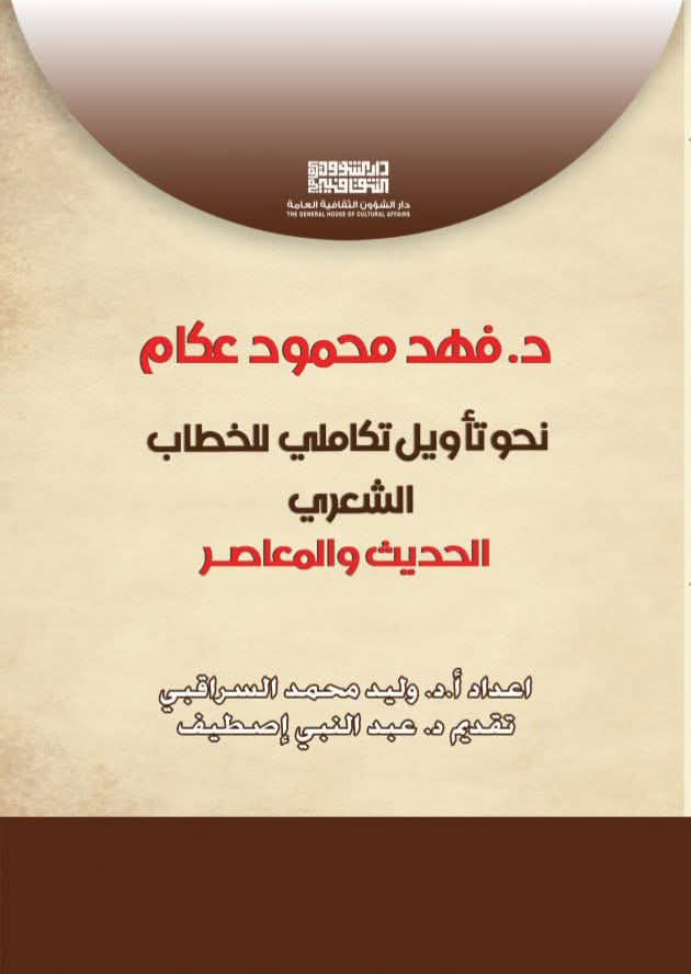 ضمن مشروعها الثقافي بإعادة طباعة المنجز الثقافي للمبدعين العرب  "" طبعة بغداد  "" وعن  سلسلة  "" دراسات نقدية "" التي تصدرها دار الشؤون الثقافية العامة / وزارة الثقافة والسياحة والآثار صدر حديثاً كتاب "" د. فهد محمود عكام