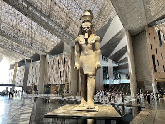هناك عدة طرق للوصول للمتحف المصري الكبير، منها من خلال مترو الأنفاق، وأُخرى عبر أستقلال أوتوبيس أو تاكسي أو ميني باص، أنا فضلتُ استقلال اوتوبيس رقم 900 من ميدان رمسيس، وهو أكبر ميادين القاهرة، وفيه محطة القطارات المركزية إلى كافة أنحاء مصر، كما فيه محطة نقل الأوتوبيسات ومثلُها للميكروباص، ويمرُ خط 900 من أمام المتحف، وبالفعل صعدتُ بهذا الاوتوبيس صباحاً، ونزلتُ في باب المتحف الرئيسية، وقطعتُ في المكان المخصص للتذاكر تذكرة الدخول إلى المتحف والتي تبلغ قيمتُها للأجانب ألف و450جنيهاً، ثم دلفتُ إلى الدرج العظيم (البهو الرئيسي)، وهو أول مكان تدخلُ به إلى المتحف، بعدها يواجُهك تمثال الملك رمسيس الثاني وهكذا بدأت جولتي للمتحف .