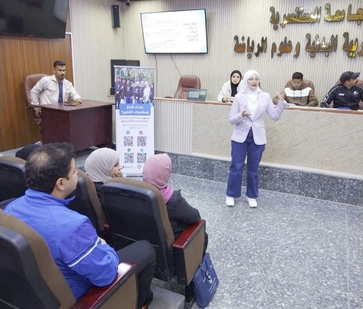 ضمن البرنامج المشترك الرامي إلى تعزيز دور الشباب الجامعي في تحقيق أهداف التنمية المستدامة، نفذت دائرة الدراسات وتطوير الملاكات والقيادات الشبابية في وزارة الشباب والرياضة، بالتعاون مع منظمة اليونيسف وكلية الآداب في الجامعة المستنصرية، مبادرتين طلابيتين نوعيتين عكستا وعي الطلبة وقدرتهم على إحداث أثر إيجابي في المجتمع.وشملت المبادرة الأولى، التي نظمها الطالب محمد علي وفريقه الشبابي، إقامة ورشة توعوية مدعومة ببوسترات إرشادية تناولت موضوع الإعلام الأخلاقي، وهدفت إلى توعية الطلبة بأهمية الإعلام المسؤول، وبيان مخاطر الاستخدام غير الأخلاقي لوسائل الإعلام، وتسليط الضوء على تأثيره في المجتمع، إلى جانب تعزيز القيم المهنية والأخلاقية في العمل الإعلامي.