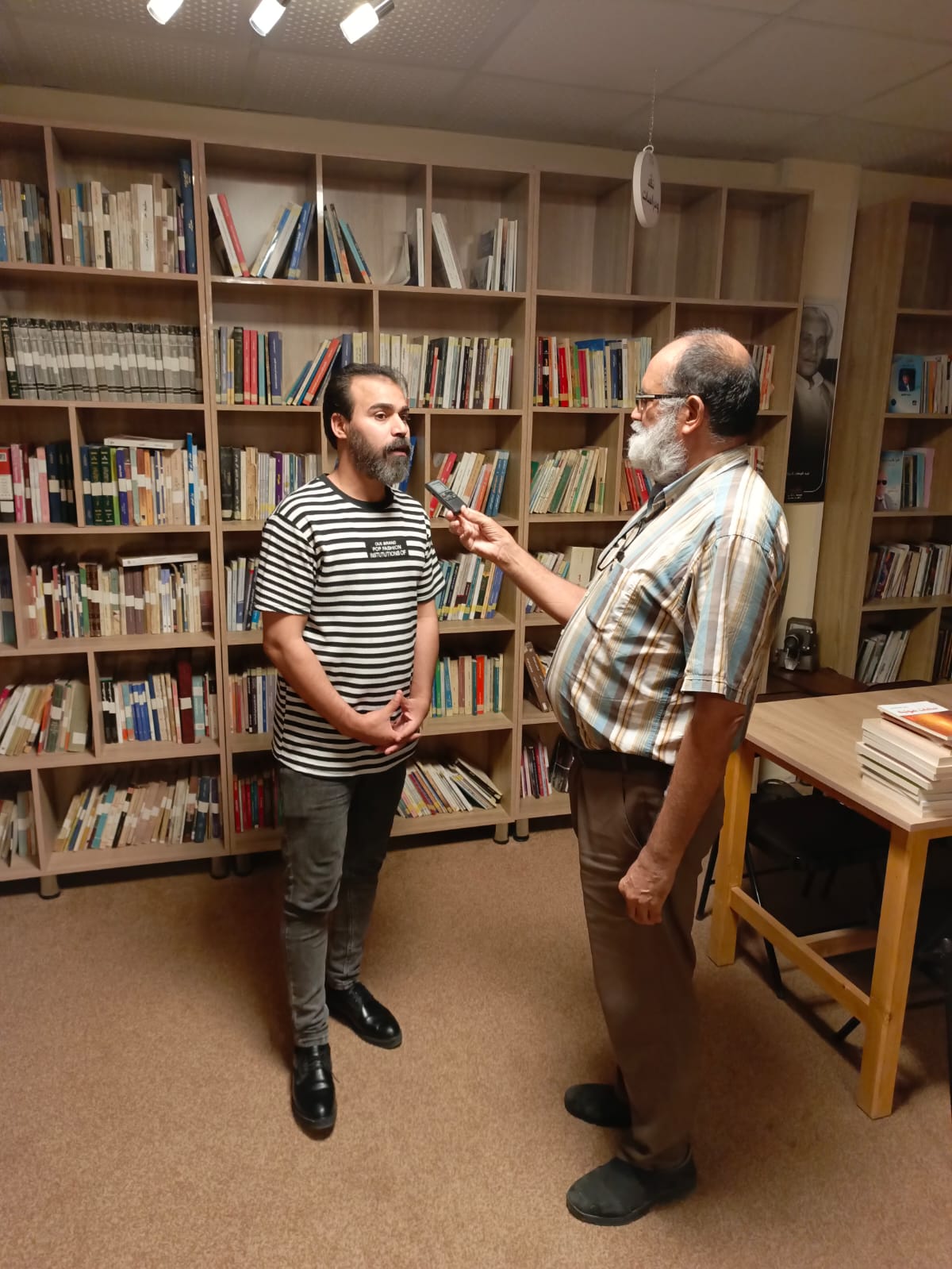 الشاعر حسين المخزومي.. مدير مكتبة (ألفريد سمعان) في إتحاد الأدباء، صدر ديوانه الأول (تغير الأسماك رأيها على اليابسة) عن دار الرافدين، و(يفكر مثل الماء ولا يجري) التي ترشحت الى القائمة القصيرة في جائزة الإبداع العراقي التي تنظمها وزارة الثقافة، وفاز بجائزة معهد غوته الألماني، ونشر قصائده في صحف محلية وعربية وعالمية، وترجمت الى لغات عدة، منها الفارسية من قبل موسى بيدج، والفرنسية، ويترجم حالياً ديوان (يفكر مثل الماء ولا يجري) الى الأسبانية، وله مشاركات مهمة في مهرجانات داخل وخارج العراق، ويختزن مشاريع عدة، قائلاً "أتشرف بإدارة مكتبة (ألفريد سمعان) وأمينتها د. خيال الجواهري" وأكد "ترفل المكتبة بثمانية عشرة كتاب، أرشفناها ورقياً وفهرسناها ألكترونياً" مضفاً "تزخر بحراك ثقافي جميل؛ وأسس الإتحاد فيها (نادي القراءة) يناقش فيه كتاب إسبوعياً، وأوسع شريحة ترتاد المكتبة هم طلبة الجامعات المحيطة بمبنى الإتحاد في ساحة الأندلس".
