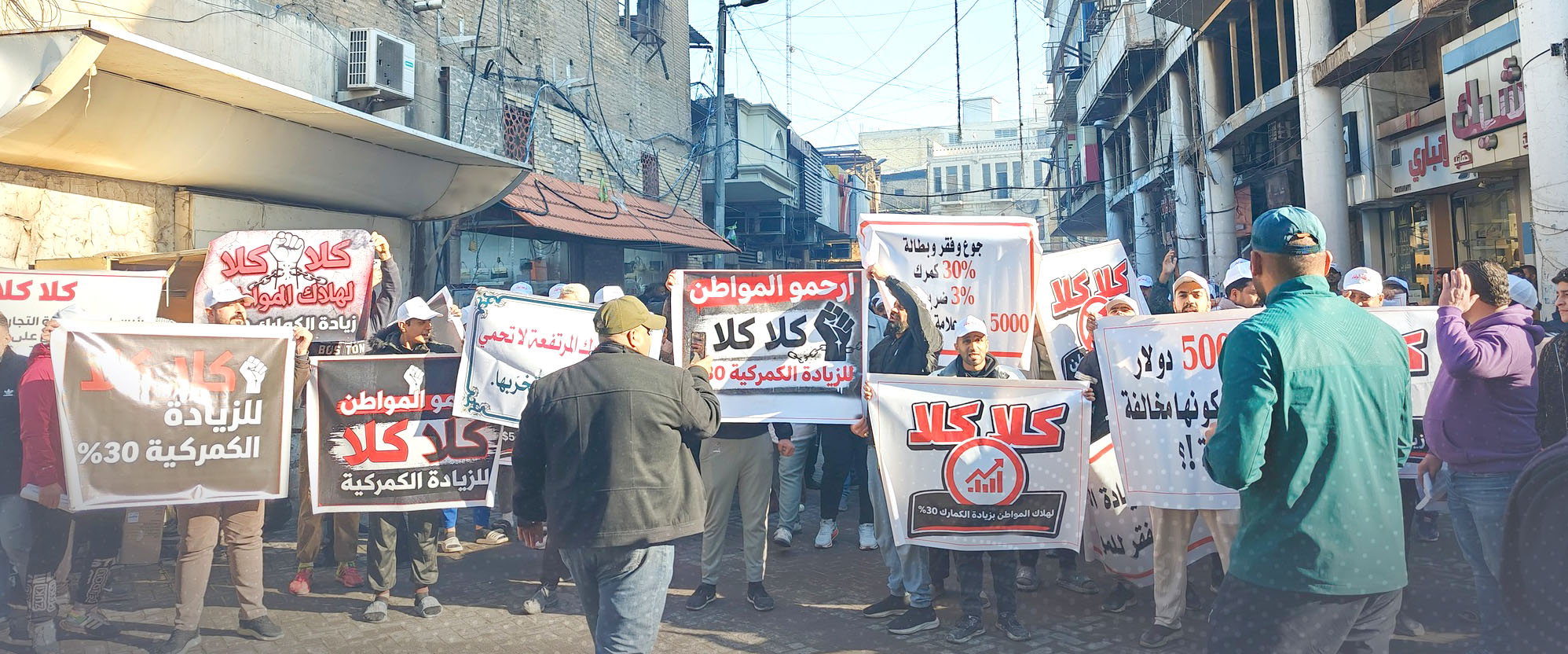 تظاهر التجار والمستوردين وصاغة الذهب، امام غرفة تجارة بغداد، احتجاجاً على فرض التعرفة الكمركية الجديدة. وقال المتظاهرون أمس إن (إجراءات التعرفة الكمركية، إلى جانب متطلبات البيان المسبق وشهادة المنشأ أثناء الاستيراد، تقيّد الحركة التجارية بشكل كبير)، محذرين من إن (استمرار هذه الإجراءات سيؤدي إلى ارتفاع أسعار المواد والسلع الأساسية في الأسواق المحلية). فيما تداولت مواقع التواصل الاجتماعي، تقارير، تفيد بدعوة رئيس التيار الوطني الشيعي مقتدى الصدر إلى تظاهرة يوم الجمعة المقبلة لاسقاط الضرائب المفروضة على الشعب. فيما كشفت النائب عن ائتلاف دولة القانون منى الغرابي، عن جمع تواقيع نيابية لتضييف رئيس حكومة تصريف الأعمال محمد شياع السوداني ووزيرة المالية طيف سامي، خلال جلسات الأسبوع المقبل. وقالت الغرابي في تصريح أمس إن (أعضاء مجلس النواب جمعوا تواقيع حاليا لتضييف السوداني وسامي، في جلسة الاسبوع المقبل ليناقشوا الايرادات غير النفطية على اعتباره ملف مهم جدا)، وأشارت إلى إن (جلسة امس التي شهدت تضييف المديرين العموميين لهيئات المنافذ الحدودية والكمارك، لم تكن بمستوى الطموح)، وشددت على القول إن (المديرين، تحدثوا في جلسة الاستضافة عن أمور عامة وليست خاصة بالإيرادات، وكان يفترض التحدث بالإيراد المالي من الرسوم والضرائب بلغة الأرقام) وواصل البرلمان خلال جلسة عقدها امس الأحد، مناقشة ملف الإيرادات غير النفطية بحضور رئيس هيئة المنافذ الحدودية ومدير عام الهيئة العامة للضرائب ومدير عام الهيئة العامة للكمارك. فيما تظاهر موظفو عقود محافظة بابل، للمطالبة بصرف رواتبهم المتأخرة ووقف التأخير المتكرر في صرفها. ورفع المتظاهرون أمس (لافتات تطالب الحكومة بالإسراع في صرف مستحقاتهم المالية)، مؤكدين إن (استمرار التأخير يفاقم أوضاعهم المعيشية ويثقل كاهل عائلاتهم)، مشددين على (الجهات المعنية باتخاذ إجراءات عاجلة تضمن انتظام صرف الرواتب وعدم تكرار حالات التأخير مستقبلاً)، محذرين من (تصعيد الاحتجاجات في حال استمرار التجاهل لمطالبهم). كما نظم موظفو عقود بشائر السلام في محافظة ميسان، تظاهرة أمام مبنى ديوان المحافظة احتجاجاً على عدم صرف رواتبهم منذ ستة أشهر. وقال المتظاهرون إنهم (من ضمن عقود بشائر السلام الذين فُصلوا سابقاً من الدوائر الحكومية، قبل إن تتم إعادتهم إلى العمل قبل نحو ستة أشهر، حيث باشروا دوامهم الرسمي في دوائرهم الحكومية من دون أن يتسلموا رواتبهم حتى الآن، الأمر الذي انعكس سلباً على أوضاعهم المعيشية وأثقل كاهل عائلاتهم)، وطالب المحتجون الحكومة (بالتدخل العاجل لإنصافهم ووضع حدّ لمعاناة تأخر الرواتب)، مؤكدين إن (مستحقاتهم المالية، ووفقاً لمعلومات تلقوها عبر نواب المحافظة، قد أُدرجت ضمن الموازنة، إلا أنها لم تُصرف حتى اللحظة). في غضون ذلك، جدد التربويون المشمولون بملف الـ19 ألف درجة وظيفية من أهالي قضاء الهارثة، وقفتهم الاحتجاجية أمام مديرية تربية البصرة للمطالبة بالتعيين. وطالب المحتجون أمس (بإنصاف قسم تربية الهارثة وإرسال ملف 1601، لغرض التنسيب أسوة ببقية الأقسام، وإنهاء ما وصفوه بحالة التهميش والإقصاء التي تعرّضت لها الملاكات التربوية في القضاء، برغم الحاجة الفعلية للملاكات التعليمية في مدارس الهارثة)، وأوضح المتظاهرون إن (الأسماء تم تزويدها بشكل رسمي، إلا إنه ولأسباب شخصية وغير مهنية، وبحسب ما ذكره مدير تربية الهارثة، رفض مدير تربية البصرة استلام أو اعتماد تلك الأسماء).