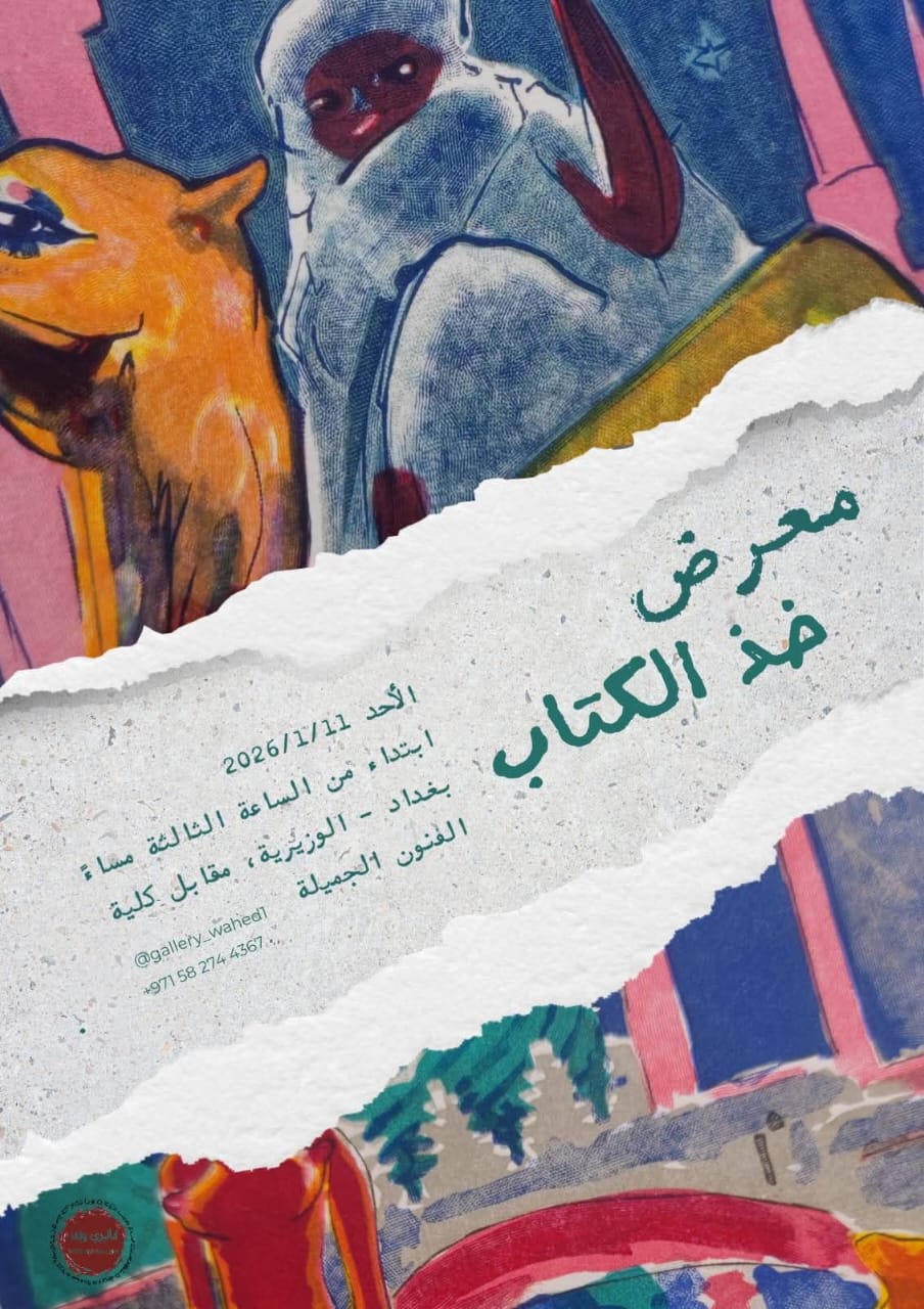 شهدت قاعة كاليري واحد الأحد الماضي افتتاح معرض (خذ الكتاب) وهو حدث فني خاص يهدف إلى نشر الثقافة الفنية والتركيز على كتاب الفنان كشكل فني مستقل والذي يتميز تنفيذه بتقنيات فنية مثل الحفر الطباعي بدل أن يكون مجرد كتاب للقراءة التقليدية وهدف المعرض هو دمج الفنون والثقافة مع الادب.
