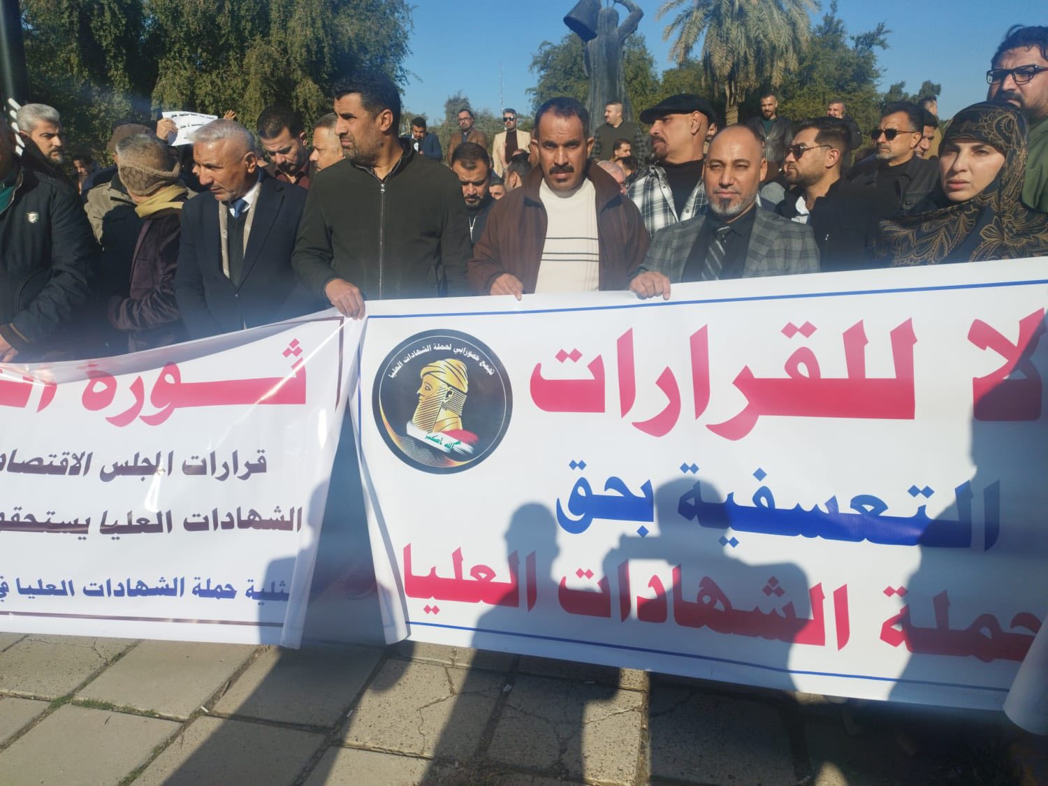 احتج أصحاب الشهادات العليا، أمام المنطقة الخضراء ببغداد، على قرار إيقاف مخصصات الخدمة الجامعية وإيقاف احتساب الشهادات العليا، مطالبين بإلغاء القرار لما يمثله، من مساس مباشر بحقوقهم المكتسبة ومخالفة صريحة للقانون. وطالب المتظاهرون أمس (مجلس النواب بالتدخل والضغط على الحكومة لإيقاف القرار)، مؤكدين إن (الاستمرار به سيخلّف تداعيات اجتماعية واقتصادية سلبية تطال شريحة أكاديمية واسعة). ورفع المحتجون خلال التظاهرة، لافتات تندد بالقرار وتعبّر عن رفضهم القاطع لتطبيقه، داعين إلى (إعادة العمل بالمخصصات وحفظ حقوق حملة الشهادات العليا)، مطالبين الجهات المعنية بـ(الاستجابة الفورية وإنصاف هذه الشريحة). وكانت الحكومة قد ألغت قرار مجلس الوزراء رقم 344 لسنة 2011، القاضي بمنح حملة الشهادات العليا مخصصات مالية بنسبة 50 بالمئة، مع توجيهها بإجراء مسح شامل لهم في جميع المؤسسات الحكومية، تمهيداً لإعادة توزيعهم وفق الحاجة الفعلية للاختصاصات. فيما أصدر المجلس الوزاري للاقتصاد، توضيحاً بشأن الضوابط الجديدة لاحتساب الشهادات الدراسية، ولا سيما الشهادات العليا، لموظفي الدولة، مؤكداً إن القرار لا يسري بأثر رجعي. واوضح المجلس في بيان تلقته (الزمان) أمس إن (الضوابط النهائية المتعلقة بآلية احتساب الشهادات الدراسية من خلال سريان القرار رقم 11 للعام الجاري، ينحصر بتطبيقه على الموظفين الذين يعتزمون تقديم شهاداتهم الدراسية أو الحصول عليها ابتداءً من الأول من الثاني من كانون الأول الجاري وما بعده)، مشيراً إلى إن (هذه الطلبات تخضع كلياً للشروط والمعايير الجديدة المنصوص عليها في القرار، التي تنظم استحقاقات الشهادة وفق الهيكل الوظيفي الجديد)، مؤكداً إن (الموظفين الحاصلين على الشهادات قبل صدور القرار، الذين استحصلوا الموافقات الأصولية للدراسة والحصول على الشهادة، غير مشمولين به)، مشدداً على إن (القرار لا يسري بأثر رجعي). وترأس رئيس حكومة تصريف الاعمال محمد شياع السوداني، في وقت سابق، اجتماعاً المجلس الوزاري للاقتصاد. وقال بيان أمس إن (الاجتماع ناقش استكمال البحث في أطر تقليص النفقات وتعظيم موارد الدولة وفق القوانين النافذة، كما تمت تناول توصية وزارة النفط المتعلقة بتحديد نسب الدعم ومعالجة الوضع المالي، إلى جانب دراسة المقترحات المقدمة من مختلف الجهات الحكومية بشأن تقليص الإنفاق)، وأشار إلى إن (المجلس تناول آليات الدعم المقدمة من صندوق دعم التصدير، وإمكانية إضافة الدعم عبر القروض، وتهيئة بيئة اقتصادية داعمة للاقتصاد غير النفطي وتنويع الموارد)، ووجه السوداني (بتشكيل لجان فنية متخصصة لدراسة جميع المقترحات المطروحة، بما يسهم في دعم خطط الحكومة الاقتصادية للمرحلة المقبلة). إلى ذلك، بحثت وزارة المالية، مع الوكالة الألمانية للتعاون الدولي، تعزيز فعالية مؤسسات الإدارة المالية وتطوير الأداء الاقتصادي العام دون التزامات مالية على الخزينة العامة. وقالت الوزارة في بيان تلقته (الزمان) أمس إن (الوزيرة طيف سامي محمد، عقدت اجتماعاً مع وفد الوكالة الألمانية للتعاون الدولي بحضور ممثلة السفارة الألمانية لدى العراق، لمناقشة الخطط الفنية والزمنية الخاصة بإطلاق المرحلة الثانية من برنامج دعم الإصلاحات المالية)، ولفت إلى إن (الاجتماع استعرض آليات استثمار المنحة المالية الألمانية البالغة 13 مليون يورو في استكمال النجاحات التي تحققت خلال المرحلة الأولى من البرنامج)، وأضاف إن (الاجتماع تناول سبل تعزيز التعاون المشترك لتوفير الاستشارات التقنية المتخصصة التي تهدف إلى تطوير دقة التنبؤ الاقتصادي الكلي وبناء القدرات المؤسسية في دوائر الموازنة والمحاسبة والدين العام والدائرة الاقتصادية وتكنولوجيا المعلومات، مع التركيز بشكل محوري على تحديث أنظمة إدارة النقد الرقمية وتطوير آليات الرقابة الداخلية بما يضمن الارتقاء بالإطار التنظيمي والقانوني للمؤسسة المالية العراقية وبما يسهم في خلق بيئة أعمال م