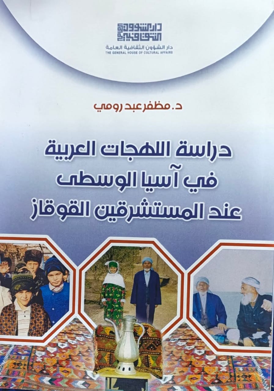 وعن سلسلة "" دراسة اللهجات "" التي تصدرها دار الشؤون الثقافية العامة / وزارة الثقافة والسياحة والآثار صدر حديثاً للباحث الدكتور مظفر عبد رومي كتابه الموسوم "" دراسة اللهجات العربية في آسيا الوسطى عند المستشرقين القوقاز "" وتنقسم هذه الدراسة إلى مقدمة وتمهيد وخمسة فصول وخاتمة . وفي التمهيد عرض الباحث التمهيد للتعريف بما حواه عنوان الأطروحة مثل اللهجة ، والاستشراق ، وآسيا الوسطى ، والقوقاز، ومما يمهّد للدراسة . أما الفصل الأول : جاء تحت عنوان ( تاريخ العرب في آسيا الوسطى والعلماء الدارسون للهجاتهم )
