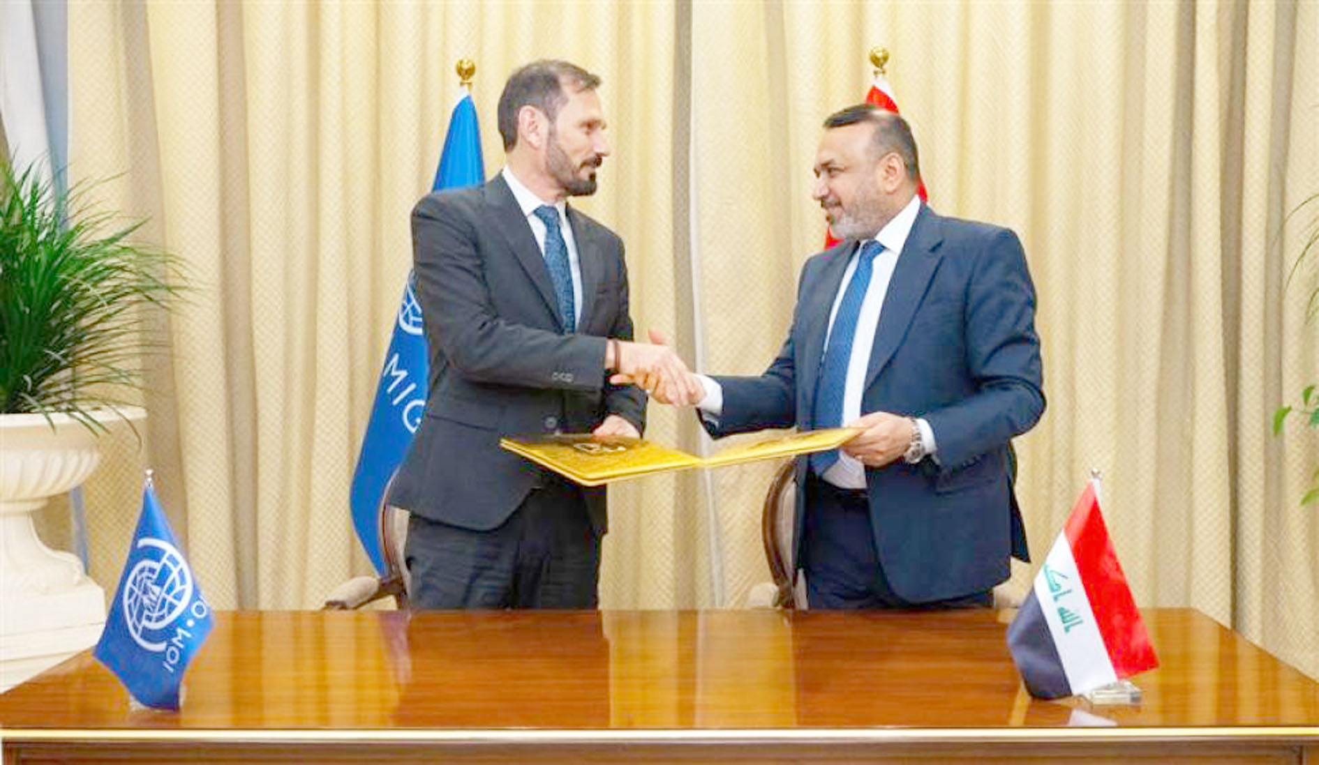 وقع وزير العمل والشؤون الاجتماعية٬ أحمد الأسدي٬ ورئيس المنظمة الدولية للهجرة٬ آي أو أم٬ في العراق٬ باسكال رينتجينز٬ مذكرة تفاهم في مجالات العمل والتدريب وتحسين سبل العيش، بحضور رئيس هيئة الحماية الاجتماعية، والمدير العام لدائرة العمل والتدريب المهني. وقال الاسدي في تصريح تابعته (الزمان) امس ان (المذكرة تهدف إلى تنظيم التعاون بين الجانبين ضمن أطر عملية واضحة، انسجاماً مع ملفات العمل والتدريب)٬