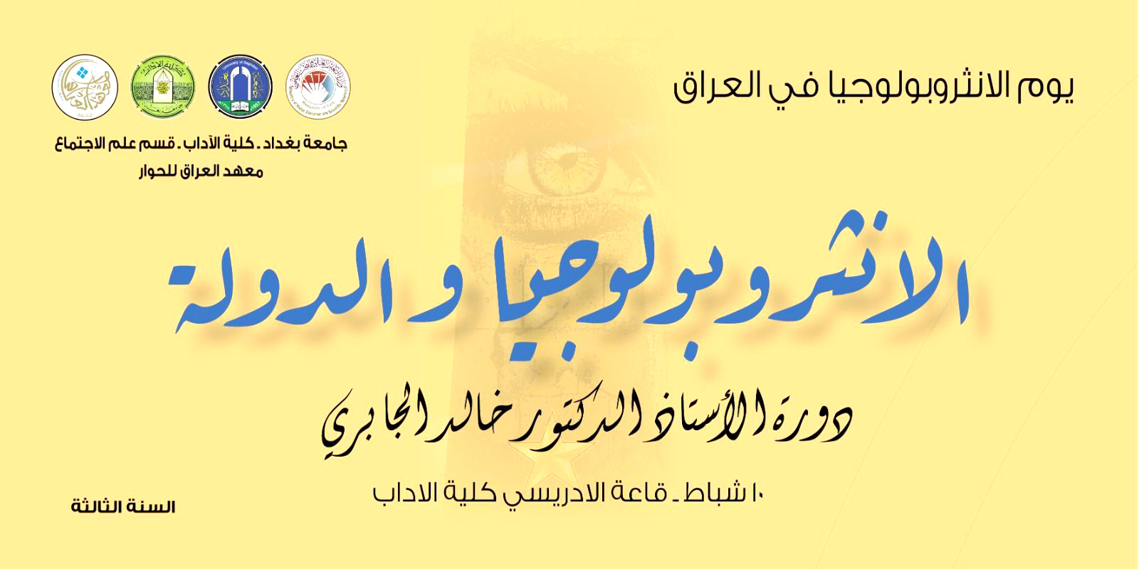 تنطلق يوم غد الثلاثاء العاشر من شباط الجاري٬ اعمال المؤتمر الدولي للأنثروبولوجيا، تحت عنوان (الدولة والثقافة٬ ملاحظات واستكشافات نظرية)، ضمن فعالية يوم الأنثروبولوجيا في العراق، الذي تنظمه كلية الاداب في جامعة بغداد باب المعظم.