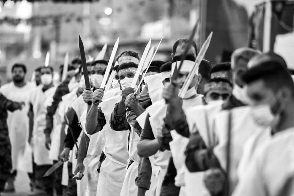 إنطلق موكب التطبير ومعه قرع الطبول وبدأت السيوف تُدغدغ الرؤوس، وكلما مضى الموكب في مسيرته تزداد وتيرة الضرب.
