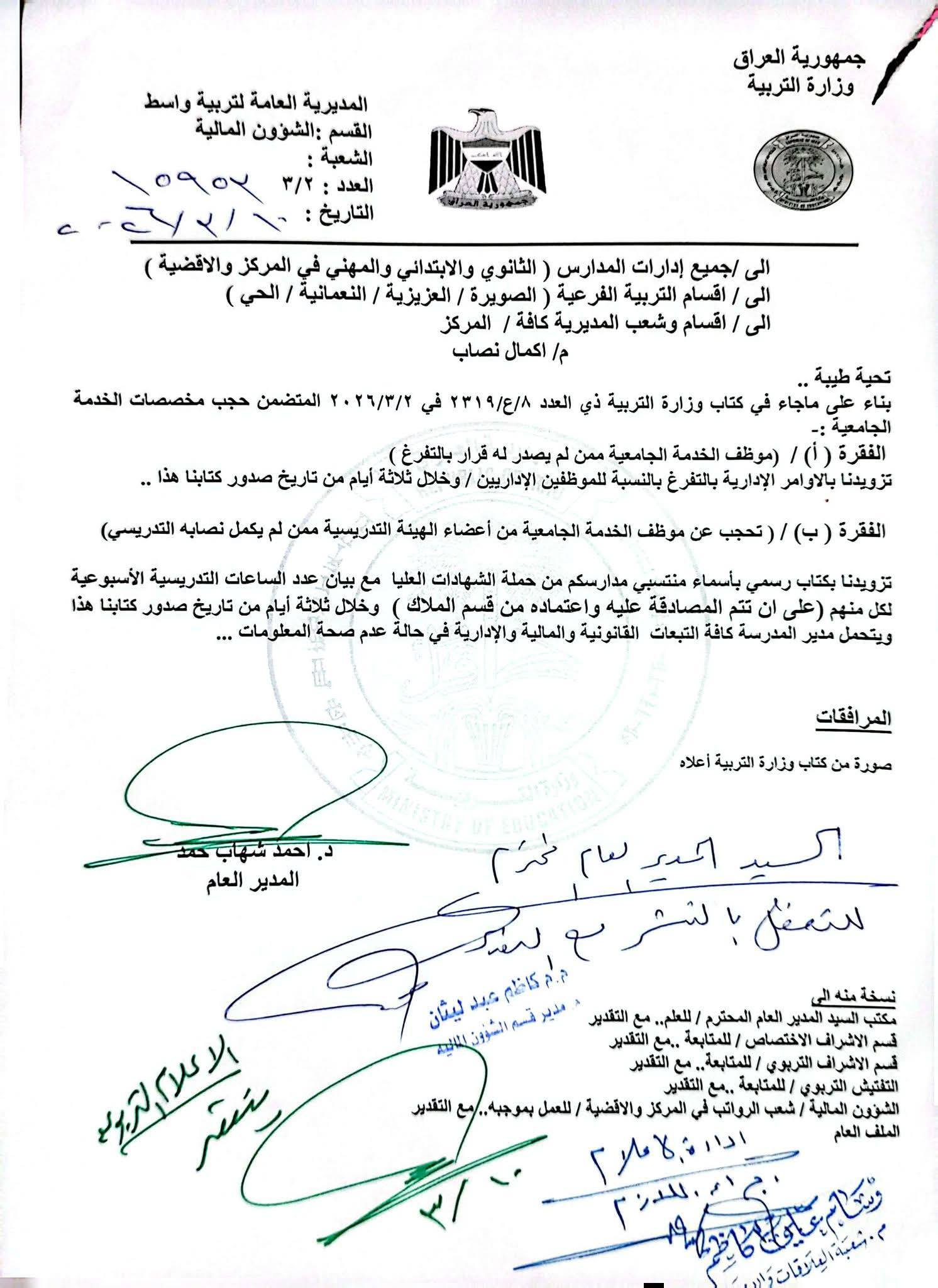 جددت ممثلية حملة الشهادات العليا للعاملين في وزارة التربية، رفضها لقرار مجلس الوزراء بشأن الغاء المخصصات عن الذين ليس لديهم نصاب، مؤكدة إنها خطوة جائرة وطعنة في خاصرة المسيرة التربوية، ومخالفة صريحة للقوانين النافذة وحقوق الكفاءات الوطنية. وقالت ممثلية حملة الشهادات في بيان أمس إن (القرار قضى بقطع مخصصات الخدمة الجامعية عن التدريسيين تحت مسوغات غير مفهومة تتعلق بأوامر التفرغ وإكمال النصاب)، ووصف البيان (القرار بـسيء الصيت)، على حد تعبير البيان، مجدداً (رفض حملة الشهادات العليا في وزارة التربية، لهذا القرار بوصفه مخالفة قانونية جسيمة وصريحة لنص المادة 27 أولاً من قانون الوزارة، التي ربطت استحقاق هذه المخصصات بشرط واحد لا غير، وهو توفر شروط عضو الهيئة التدريسية المنصوص عليها في قانون وزارة التعليم العالي رقم 40 لسنة 1988، ما يجعل القرار قفزاً فوق القوانين وتجاهلاً للأطر التشريعية المشرعة من قبل البرلمان)، مؤكداً (دعم الممثلية الكامل لمطالب نقابة المعلمين العراقيين، التي طالبت الوزارة بتشكيل لجنة وزارية عاجلة لوضع تعليمات تضمن عدم المساس بالمخصصات وعرضها على هيئة الرأي للمصادقة عليها واعمامها)، مشدداً على إن (ممثلية حملة الشهادات تمهل الجهات المعنية كافة، مهلة أقصاها إلى يوم الخميس المقبل، لإلغاء هذا القرار الذي وصفه ابلجائر، أو إيجاد تكييف قانوني يضمن حماية مخصصات التدريسيين بكافة تخصصاتهم دون أي نقصان)، محذراً من إنه (في حال عدم الالتزام، سندعو إلى التظاهر والاعتصام في بغداد، ولن يكون هناك تراجع أو عودة إلى قاعات المدارس إلا بإلغاء القرار رقم 75 بالكامل واستعادة كرامة وحقوق حملة الشهادات العليا)، واستطرد البيان بالقول (حقوقنا خط أحمر، ولن نسمح بسياسات التهميش ‘ن تمرر على حساب علمنا).