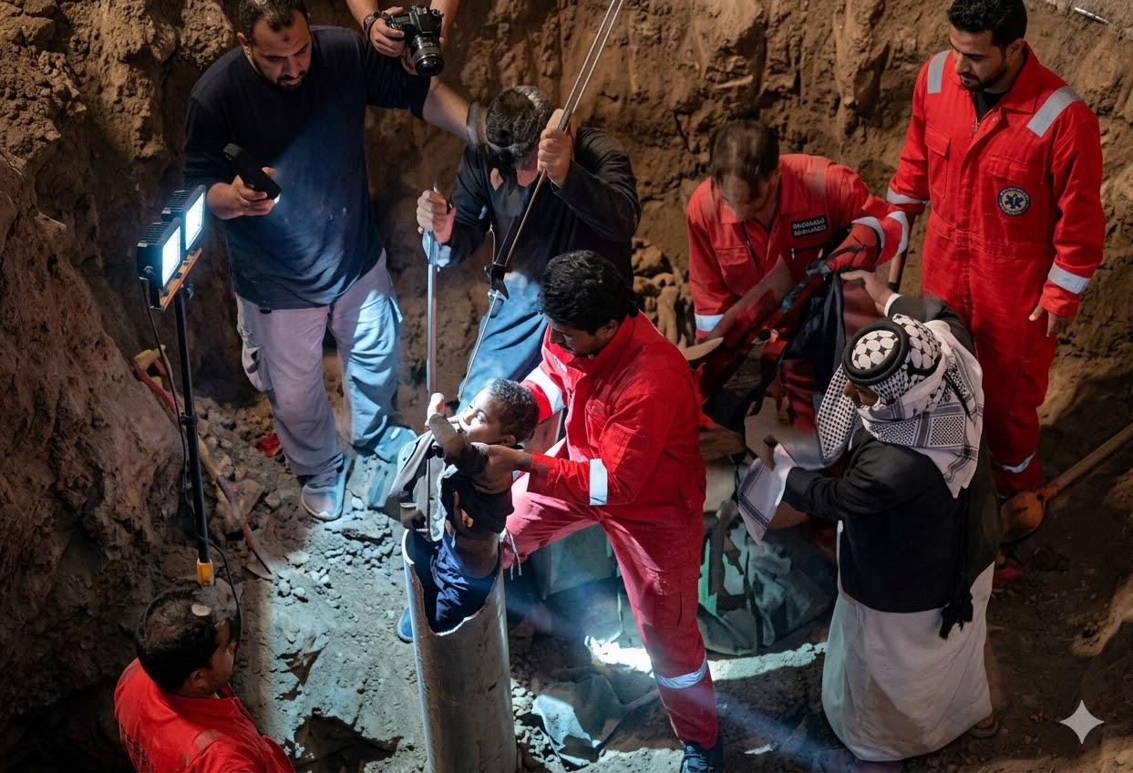 إنتشال جثة طفل سقط في بئر بعمق 73 متراً