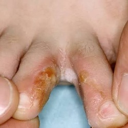 ج.ضع الباودرالمضاد للفطريات بين أصابع القدم للحفاظ على جفاف الجلد