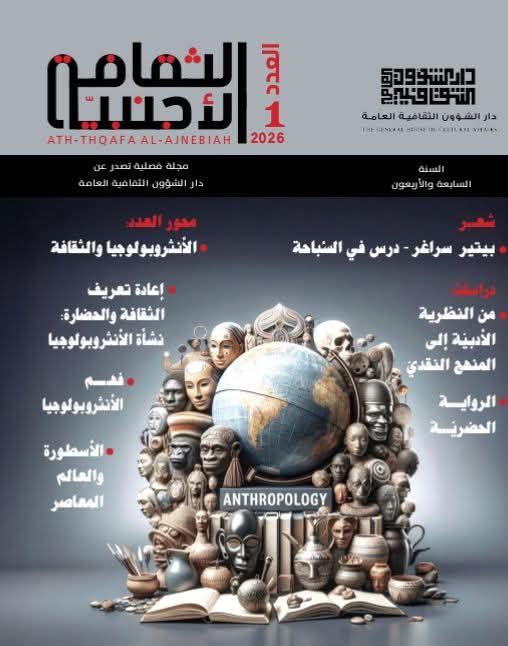 صدر حديثاً عن دار الشؤون الثقافية العامة وزارة الثقافة والسياحة والآثار العدد الأول لعام 2026 السنة السابعة والأربعون من مجلة الثقافة الأجنبية المجلة الفصلية التي تعنى بشؤون الثقافة والآداب والفنون في العالم وجاء العدد بمحور الأنثروبولوجيا والثقافة ، ولأن الاهتمام المتجدد بالأنثروبولوجيا الفلسفية ، كما تُظهره الدراسات والنصوص التي يضمها هذا العدد ، ليس مجرد عودة أكاديمية إلى حقل قديم ، بل هو أيضاً استجابة لحاجة نفسية عميقة. وجاء في مقدمة العدد إفتتاحيتها تحت عنوان " الأنثروبولوجيا التفاعل بين الفلسفة والعلوم " بقلم رئيس التحرير الاستاذ كامل عويد العامري نقتطف منها ( في هذا العدد ، لانفتح صفحاتنا بوصفها فضاءً للمعرفة فحسب، بل باعتبارها أيضاً مساحة إنصات للإنسان وهو يفكر في نفسه ، في هشاشته ، وفي محاولاته الدائمة لفهم ما يجعله إنساناً وسط عالم يزداد تعقيداً وضغطاً . تأتي موضوعات هذا العدد ، الممتدة من فلسفة الميتا للأنثروبولوجيا الفلسفية إلى اسئلة الطبيعة والتاريخ ، ومن التوتر بين الوصفي والمعياري إلى رهانات القرن الحادي والعشرين ، لتضع القارئ _ والكاتب قبل القارئ _ أمام سؤال جوهري : كيف نفكر في الإنسان اليوم من دون أن نفقد إنسانيتنا نحن ؟ لكن هذا السؤال المعرفي لا ينفصل عن سؤال آخر أكثر قرباً والماً : سؤال صحة الكاتب النفسية . ) وجاء في حقل دراسات المجلة ،الرواية الحضرية : كريستينيا هورفاث... ترجمة : د. رضا الأبيض ، الوجود المعاصر في رواية الكمال : ملاك أشرف، من النظرية الأدبية إلى، المنهج النقدي.. ريتا فيلسكي... ترجمة : د. عادل الثامري، وفي محور العدد نقرأ _ فهم الأنثروبولوجيا.. جاك ديفيد إيلر... ترجمة نجاح الجبيلي _ إعادة تعريف الثقافة والحضارة : نشأة الأنثروبولوجيا... ناديا سيريميتاكيس.. ترجمة : د. رمضان مهلهل سدخان، _ أصول الأنثروبولوجيا الثقافية : القوى العالمية والحيوات المحلية... جاك ديفيد إيلر ترجمة : أمير دوشي _ الأسطورة والعالم المعاصر... جوزيف جون كامبل... ترجمة ناطق فرج _ الطبيعة والثقافة والخبرة : حول حركة البناء الثقافي للإنسان... وندي جيمس ترجمة : د. ستار جبار راضي _ فلسفة الميتا للأنثروبولوجيا الفلسفية... إندريا بورزان ترجمة : بهاء محمود علوان _ فهم الثقافة... جاك ديفيد إيلر ..ترجمة : هاشم كاطع لازم _ مفهوم الترجمة الثقافية في الأنثروبولوجيا الاجتماعية البريطانية طلال أسد..... ترجمة :عمر عبد الغفور القطان _ مقاربة أنثروبولوجية من منظور عالم الإجتماع.. نيكولا دودييه... ترجمة : د. عواطف نصيف جاسم _ تفعيل الأنثروبولوجيا في خدمة التنمية والتحول الإجتماعي... مارك إريك غرونييه... ترجمة : ميساء عبد الجليل مسيب ،_ كيف ينشأ علم الإجتماع ؟ مسارات وتجارب وممارسات متقاطعة.. لوك بولتتسكي، أرنو إسكوير. جين لازاراس... ترجمة : كامل عويد العامري، وفي باب شعر نطالع من الشعر الألماني المعاصر... الزيزان ترجمة وتقديم : وحيد نادر ، _ بيتير سراغر.. درس في السباحة.. ترجمة من اللغة الرومانية إلى العربية : جورج غريغوري، وفي باب قراءات _ بورتريه مصغر لفاجعة... إيميلي بيتو... ترجمة رغد قاسم ، باولو كويلر... الكاتب الظاهرة .. باقر صاحب _ سالي روني : الجانب المظلم... جي دي ديس... ترجمة صالح الرزق ، _ قراءات ملخصة في كتاب ( الإرادة الحرة) الكاتب توماس بينك.. نهضة طه الكرطاني، _الأنثروبولوجيا والتاريخ في عصر التنوير... ميشيل دوشيه _ سعادات اليوم : أنثروبولوجيا اللحظة للناشر : البان ميشيل..عرض سعاد حسين ياسر ،