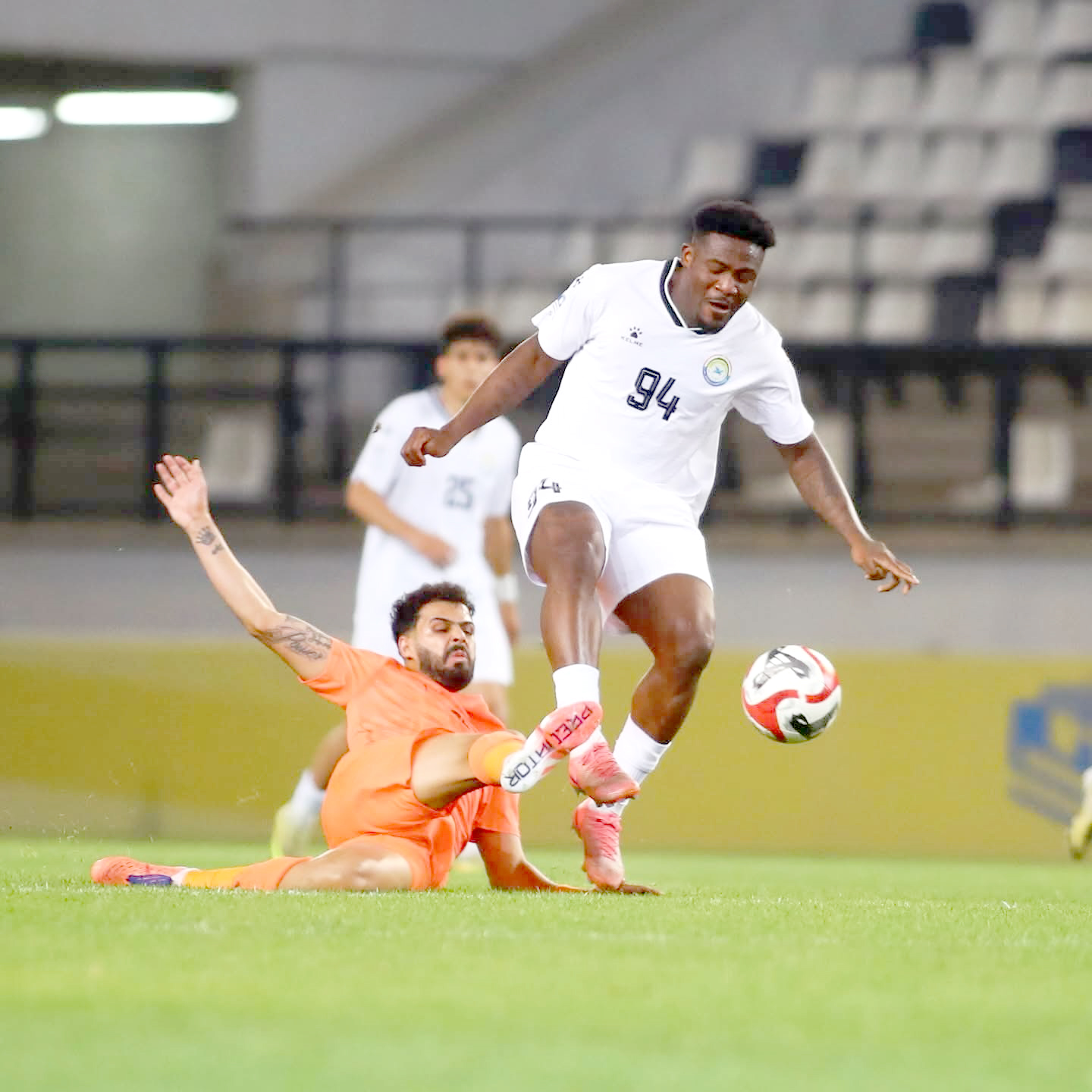 فشل فريق القوة الجوية الذي فاز في اخر ثلاث مباريات في دوري نجوم العراق في تحقيق الفوز الرابع مكتفيا بالتعادل بهدف امام ضيفه اربيل ورفع رصيده الى70 نقطة في مباراه سلبية لعبا ونتيجة قبل تقليص الفارق الى سبع نقاط عن اقرب ملاحقيه الشرطة ما يرفع من حظوظ الوصيف في مواصلة الصراع على الصدارة امام 8 جولات متبقية على نهاية الدوري وسط تصاعد التحديات بوجة المتصدر عندما تغلب بصعوبة وفي الوقت البديل على الكهرباء وبنفس السيناريو على دهوك قبل تعديل النتيجة امام اربيل في الدقيقة 60 وخرج بتعادل بطعم الخسارة . و التعثر الاخير يعني اكثر من شيء ويفرض على رشيد جابر تقويم مسار الامور بسرعة لان الفريق سيكون امام مواجهات غير عادية و تحديا في كل مباراة وقد يخلق ذلك نوعا من الصعوبات على مهمة الفريق وفرصة التتويج باللقب. أما اربيل الاخر الذي لم يتمكن من الفوز الثالث في اخر ثلاث مباريات لكن لايمكن التقليل من اهمية النقطة التي قلص الفارق فيها مع الشرطة الى ثلاث نقاط وظهر بسرعة. و قوة من البداية ونجح في تسجيل هدف التقدم عن طريق د تيميروف د 29 وقدم مستوى عالي كما اعتاد ان يلعب في هذة الفترة وفي مباراة جيدة عندما حقق الافضلية بهدف التقدم وفرض شخصيته وقدم لاعبو الفريق امكانية فنية و مهارية عالية والكل يتمتع بلياقة بدنية وظهر منافس جيد واستحوذ على الكرة وسيطرة على مجريات الامور وتفوق وشكل خطورة. على الجوية وخلق له صعوبات كثيرة مستغلا المساحات في مناطقه وهدد مرماه باكثر من كرة خطيرة تصدى لها الحارس محمد صالح بثبات وتالق جديد ونجح في إنقاذ فريقه من الخسارة لان اربيل كان في الموعد وقدم واحده من افضل مبارياته ، اكتفى الشرطة بالفوز الصعب على القابع في مؤخرة الترتيب فريق القاسم بثلاثة أهداف لهدف عندما تقدم الضيف من ركلة جزاء نفذها علاء محيسن في الدقيقة 22 قبل ان يعدل مناف يونس النتيجة د26 واستمرت محاولات الشرطة الذي اندفع للهجوم لتعزيز تقدمه لكنها اصطدمت بالدفاع المكثف والمنظم للمنافس ونجح في التصدي لكل محاولات الوصيف وظل صامدا حتى الدقيقة 86 عندما تمكن أتينا من تسجيل هدف التقدم قبل ان ينجح شريف عبد الكاظم من اضافة هدف حسم اللقاء الثالث. ورفع رصيده الى 63 نقطة الفوز الذي لم يأت سهلا قبل ان تاخذ خسارة الزوراء وتعادل الكرمة لكنه استفاد من تعادل الجوية مع اربيل بتقليص الفارق مع المتصدر الى سبع نقاط لكن ذلك لازال يأخذ الكثير من تفكير الفريق في مهمة الدفاع عن اللقـــــــب ما انعكس على تركيز وحماس وضعف الاداء في اخر ثلاث الدوري وكل ما خرج به الفريق توسيع الفــــارق مع الملاحق القوي اربيل الى ثلاث نقــــــاط في وقــــــت تلاشت تماما امال فريق القاسم في البقاء ويواجه بشكل حقيقي وكبير مصير الهبوط بعد ارتفاع سلسلة نتاىج الفريق الكارثية بلغت 29 خسارة في وضع غير متوقع ومعقد للفريق الذي قدم الموسم المنتهي بشكل جيد ولا يمكن مقارنته مع المشاركة الحالية الباهتة.