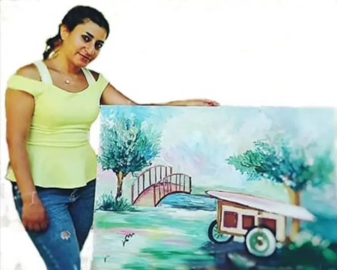ووصفت بدايتها مع الفن التشكيلي بأن بداية الفن موهبة وهبها الخالق لها، بدأت تظهر على مقاعد الدراسة الابتدائية، وبعدها دخلت إلى الجامعة وتخصصت بدراسة الفن التشكيلي وتعرفت على العديد من التقنيات والمدارس الفنية.