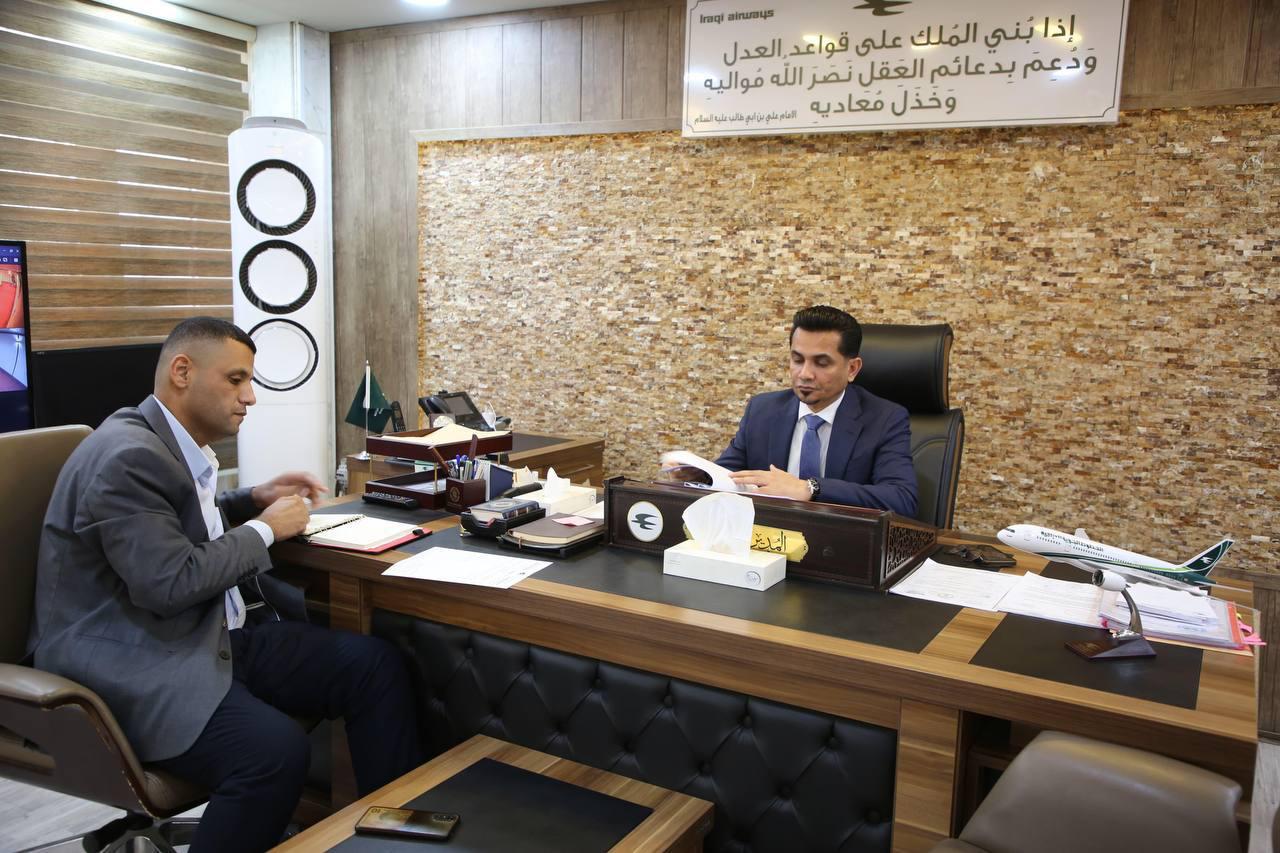 أشرف وزير النقل رزاق محيبس السعداوي ميدانياً أمس على مجريات العمل داخل الخطوط الجوية العراقية. في اعقاب الفوضى وتعطل رحلات الطيران المدني.
