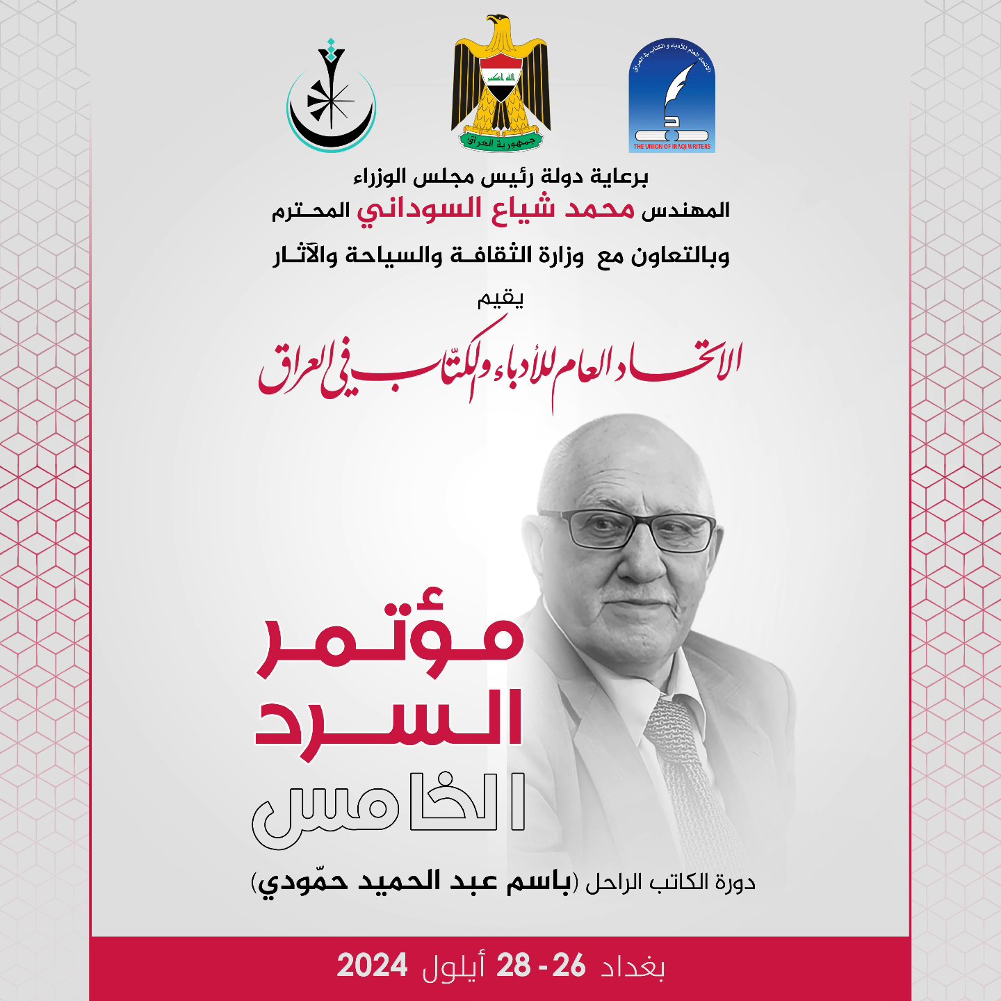 بعد أن أطلَّ الاتحاد العام للأدباء والكتّاب في العراق على جمهوره بدورات أربع لمؤتمر السرد، يتواصل اليوم بنسخة خامسة من هذا المؤتمر للمدة من 26 - ايلول الجاري 28،وتجيء هذه الدورة لتؤكّدَ أن (السرد لغة الحياة) وحاملةً راية الوفاء لكاتب قدير فقدته الأوساط الثقافية، وهو الفلكلوري (باسم عبد الحميد حمّودي) إذ ستُفتتح أثناء المؤتمر زاوية خاصة بمقتنياته، مع توزيع كتابه الأخير، الصادر عن منشورات اتحاده (العراقي الدكتور داهش في صندوق الولايات).